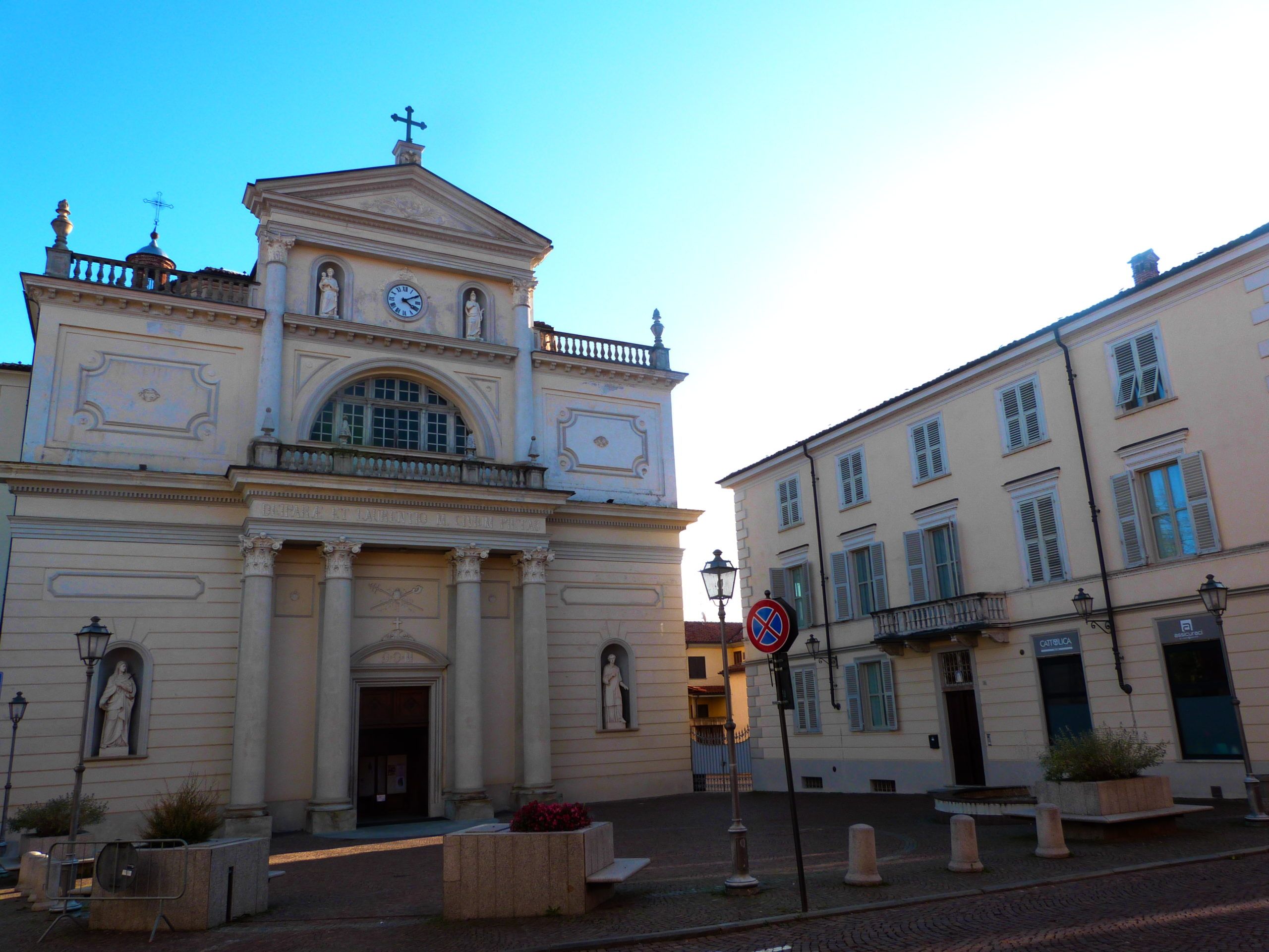 Il camminatore caparbio, deciso a raggiungerne la vetta, sarà premiato. Si arriva al cuore antico dell’intero borgo, piazza S. Caterina. Un luogo di grande fascino, dove sono situati alcuni degli edifici più significativi della storia di Villanova: il castello, l’antico palazzo comunale, l’ospedale, la confraternita di Santa Croce e la chiesa di Santa Caterina, l’antica parrocchiale del paese, un tesoro artistico, ancora oggi utilizzata dalla comunità: rappresenta una cornice unica per gli eventi del paese, tra cui i prestigiosissimi “Dialoghi Eula” che da anni portano nel Monregalese i grandi nomi della politica nazionale per una giornata di studi e riflessioni. La chiesa è caratterizzata da un’architettura romanica, squadrata e austera, che cela al suo interno cicli di affreschi risalenti al Quattrocento. È curioso il contrasto, nella stessa piazza, con la confraternita, che invece è risalente al Settecento, ed è un buon esempio di Barocco piemontese, tuttora aperta al culto. Nella sua forma si riscontra una forte influenza dello stile di Francesco Gallo, ma non è opera del maestro, bensì del pur ottimo Bernardo Vittone, collaboratore proprio del celebre architetto monregalese, allievo del torinese Filippo Juvarra.